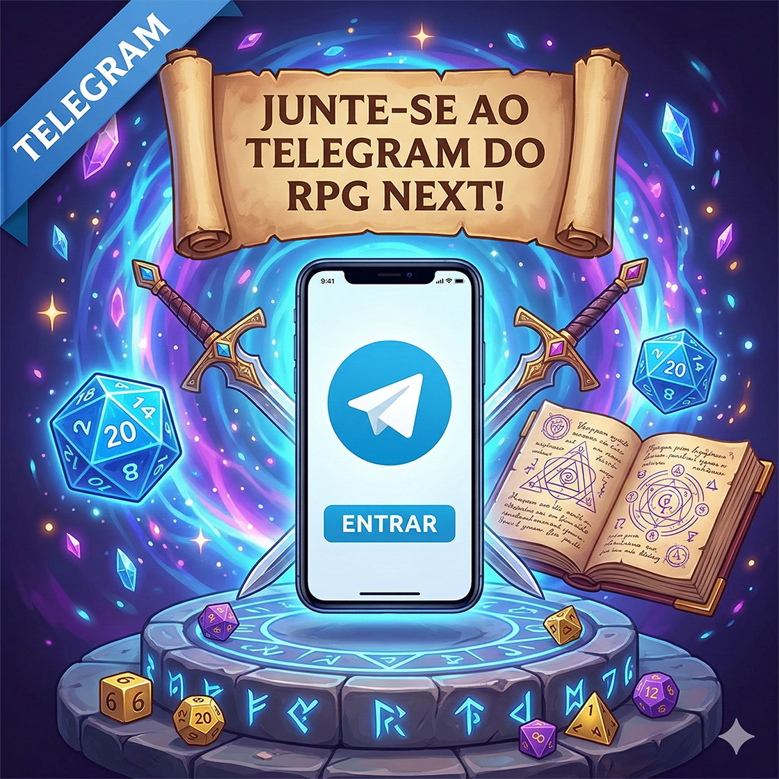 O RPG Next agora tem um grupo oficial no Telegram! Venha trocar ideias, compartilhar suas aventuras e se conectar com outros jogadores apaixonados por RPG. Entre agora e faça parte dessa comunidade épica: https://t.me/RpgNextOficial .